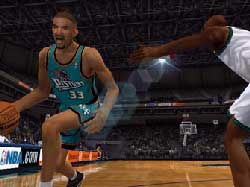 It's where you crouch down with your back to the basket, shielding the ball from your opponent. It all works beautifully, thanks in part to some excellent team-mate AI. We've played it extensively and are still amazed by some of the little touches that make onlookers think they're watching a real game on TV.